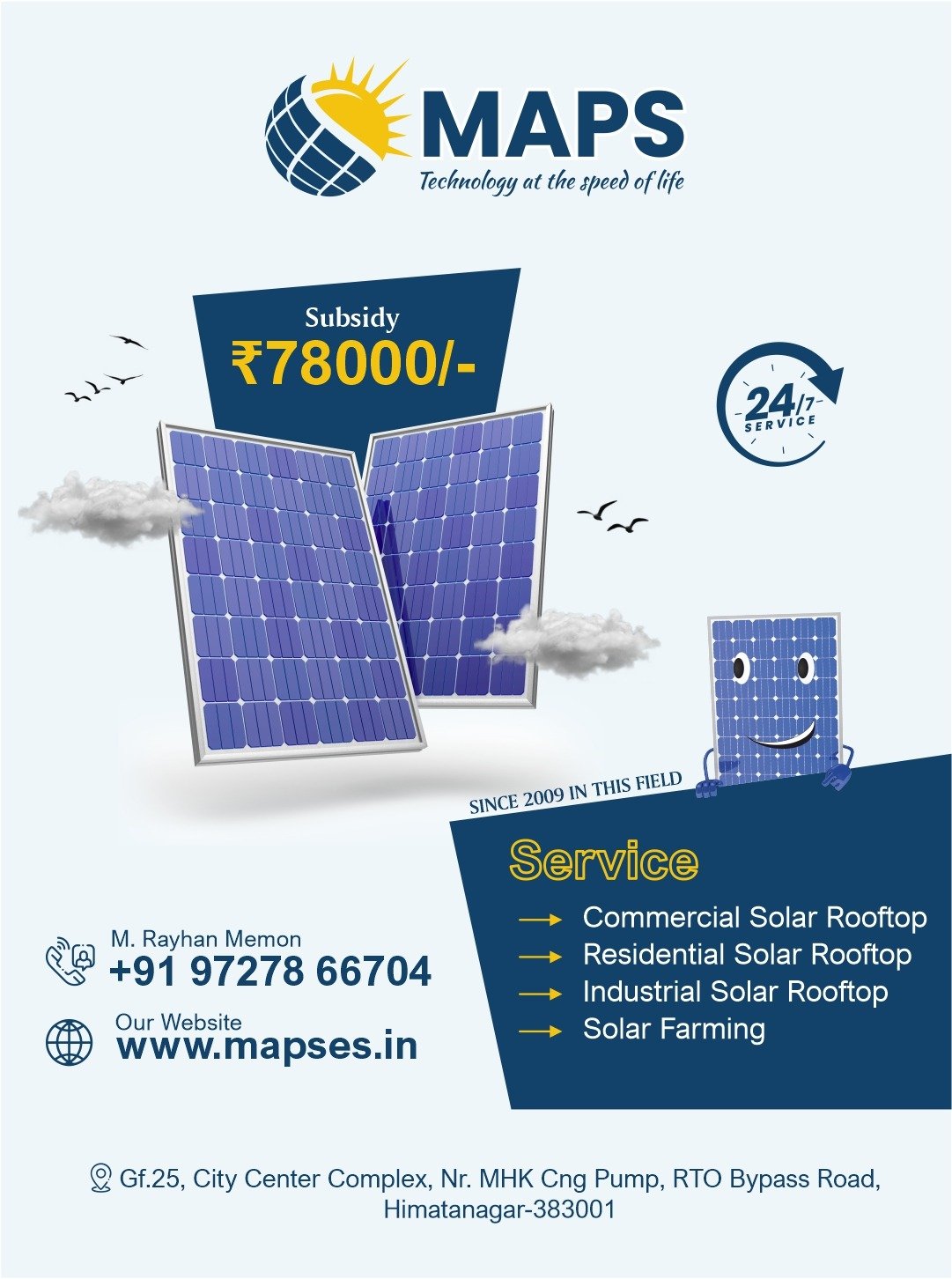 Our mission is to make sustainable power accessible, reduce electricity costs, and contribute to a greener future for Himatnagar and beyond. Backed by innovation and reliable service, MAPS Electronics And Systems Solar has become a preferred choice for residential, commercial, and industrial solar projects.